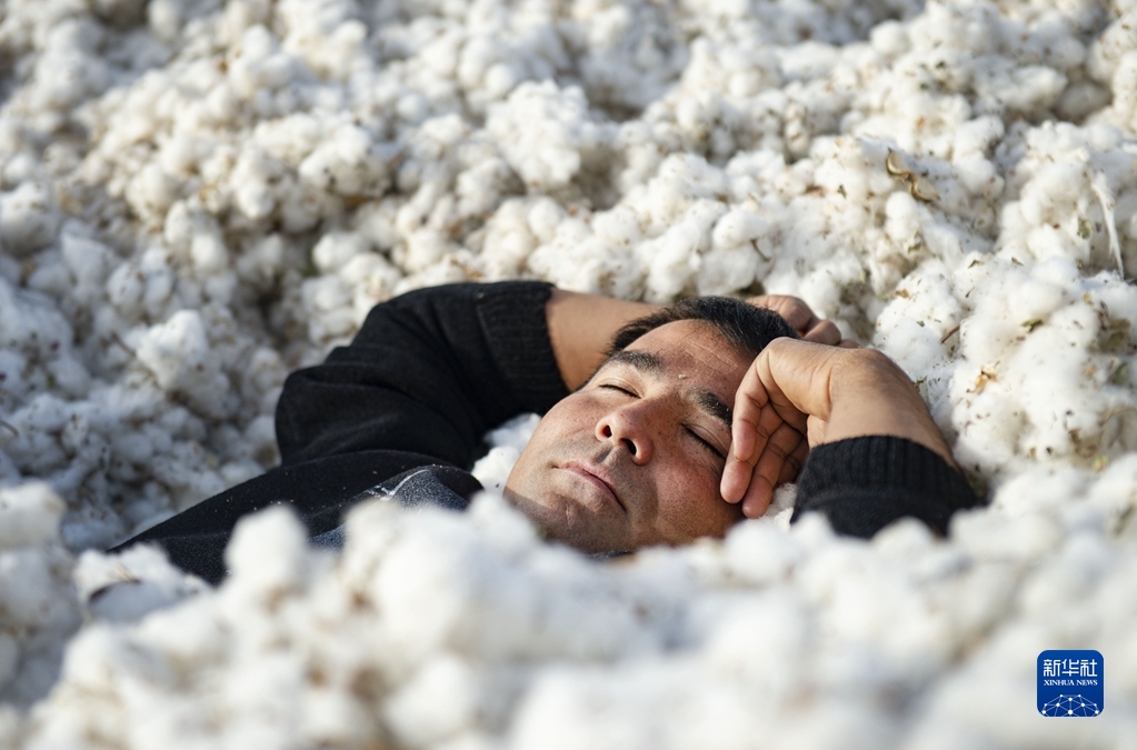 2021年10月26日,在新疆沙雅縣托依堡勒迪鎮的一處棉田里,棉農艾買爾·艾則孜躺在剛采下的棉堆里小睡。艾買爾·艾則孜一家種棉已有20多年。隨著機械化種棉的推廣,艾買爾·艾則孜家棉花的翻地播種、施肥打藥、采收售賣基本都由機器完成,效率和收入明顯提升。