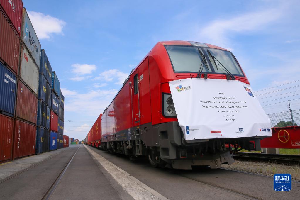2021年6月4日,首趟從中國江蘇南京至荷蘭蒂爾堡的中歐班列抵達荷蘭蒂爾堡。