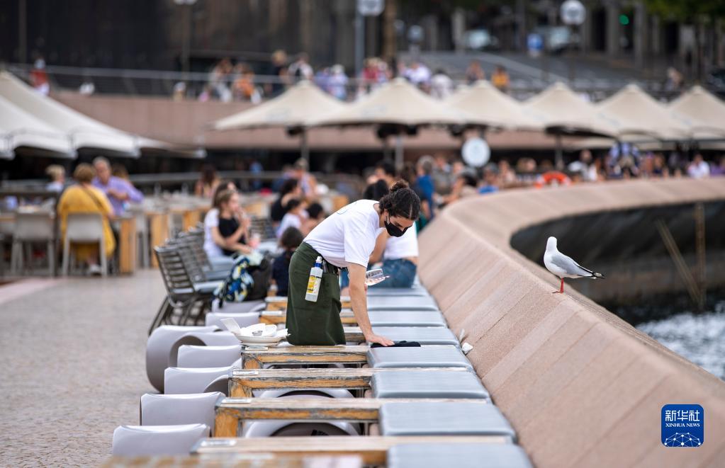 1月9日,一名餐廳服務員在澳大利亞悉尼清潔戶外餐桌椅。