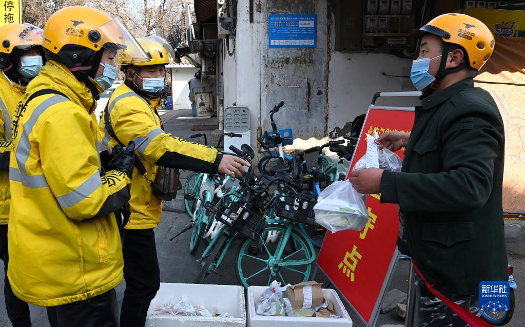 1月11日,外賣員在西安市蓮湖區北馬道巷取餐。