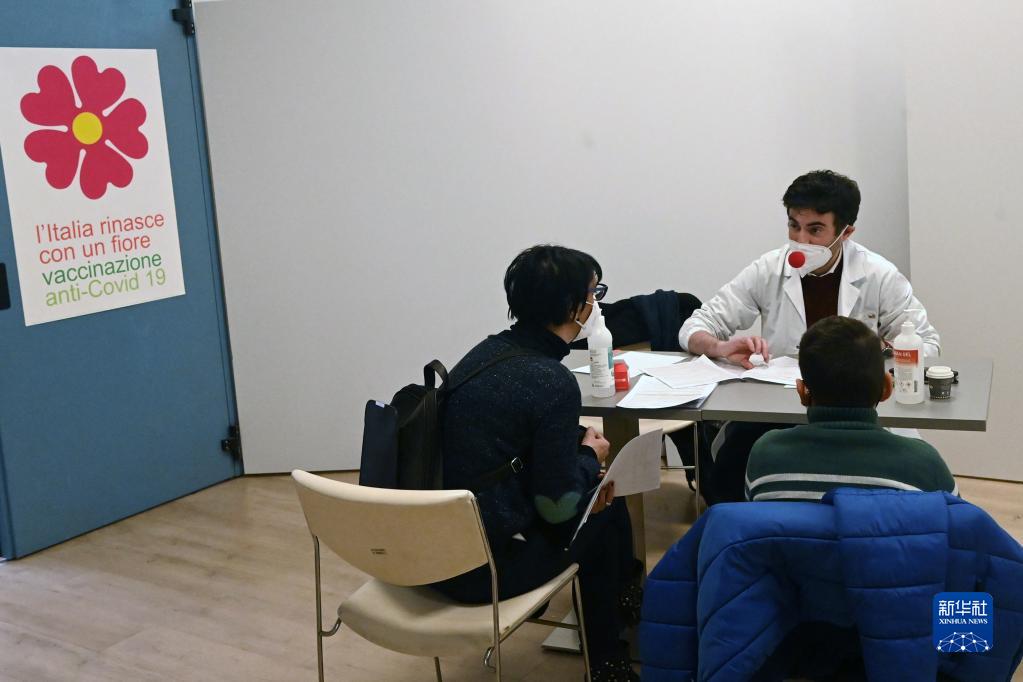 1月16日,人們在意大利博洛尼亞一處新冠疫苗接種中心登記接種新冠疫苗。