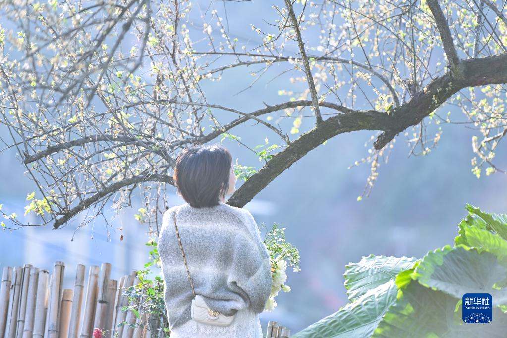 1月13日,游客在福建省福州市永泰縣葛嶺鎮溪洋村賞梅。新華社發(周義 攝)
