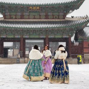 1月19日,在韓國首爾,乘客觀看車窗外的降雪。