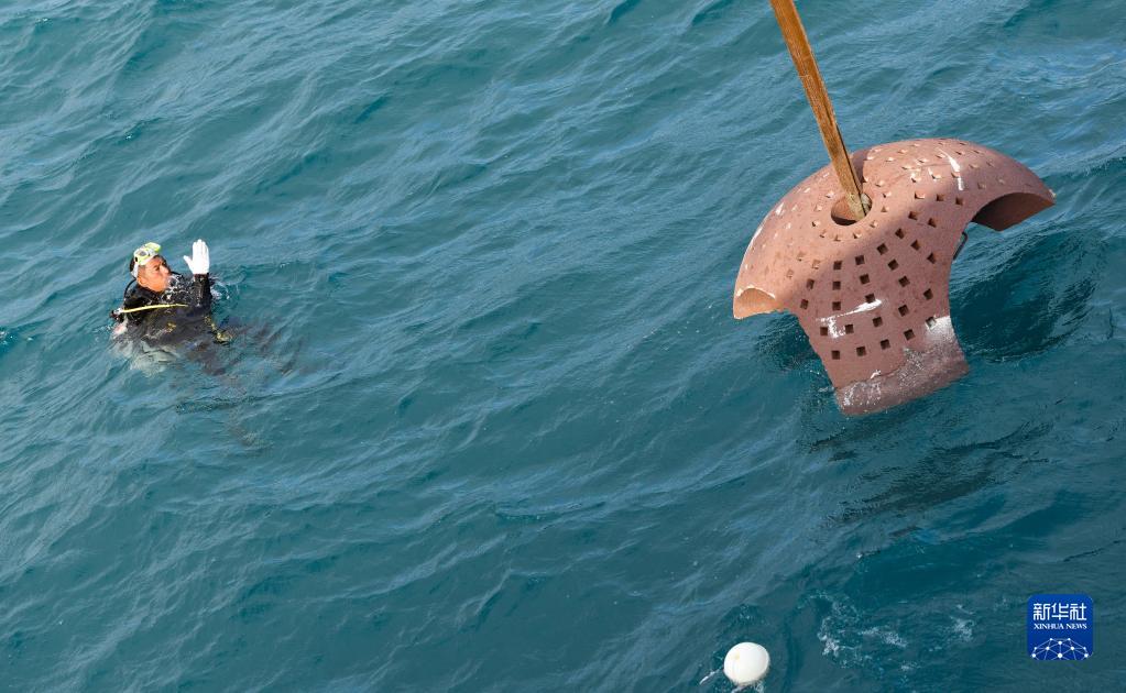 近日,在海南省三亞市亞龍灣相關海域,三亞珊瑚礁生態研究所聯合相關企業,在該海域投放近80個人工生態礁,加速生態修復。
