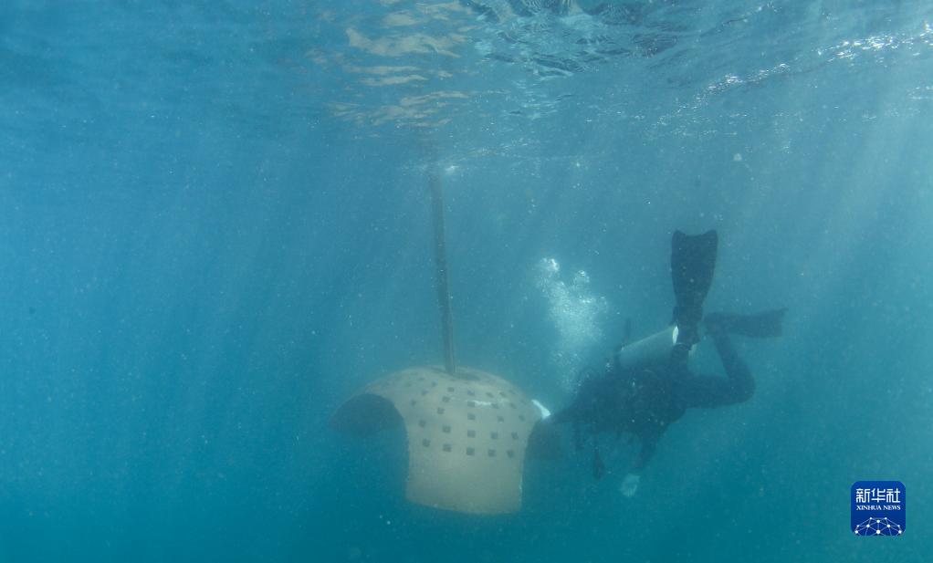 近日,在海南省三亞市亞龍灣相關海域,三亞珊瑚礁生態研究所聯合相關企業,在該海域投放近80個人工生態礁,加速生態修復。