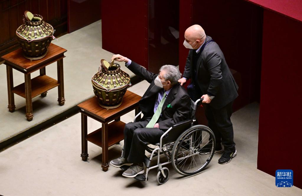 1月25日,在位于羅馬的意大利眾議院,一名議員參加總統選舉投票。