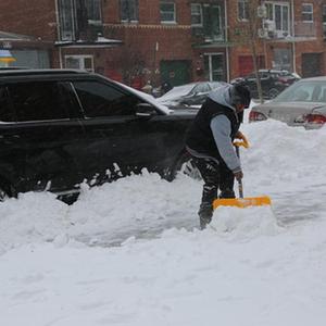 1月29日,一名居民在美國紐約清掃路上積雪。