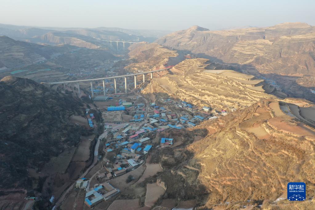 這是1月31日拍攝的蘭州市七里河區西果園鎮袁家灣村(無人機照片)。