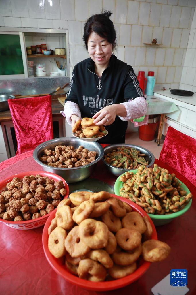在蘭州市七里河區西果園鎮袁家灣村,村民張軍蘭在家中炸油餅、炸丸子(1月26日攝)。