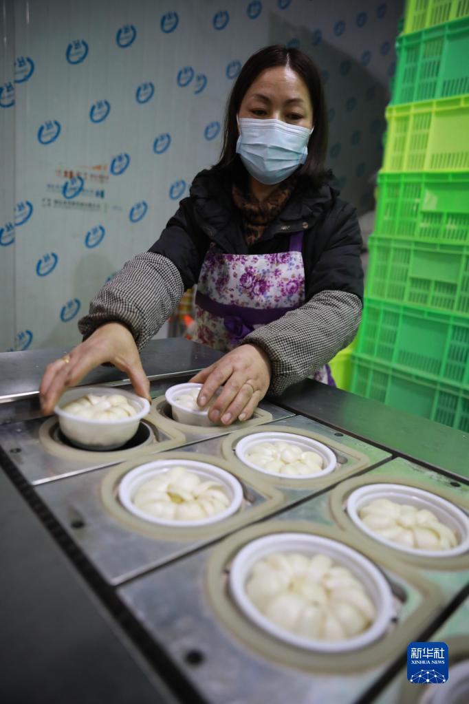 在蘭州市七里河區西果園鎮袁家灣村百合加工車間,村民許海燕將分揀完成的百合進行包裝(1月26日攝)。