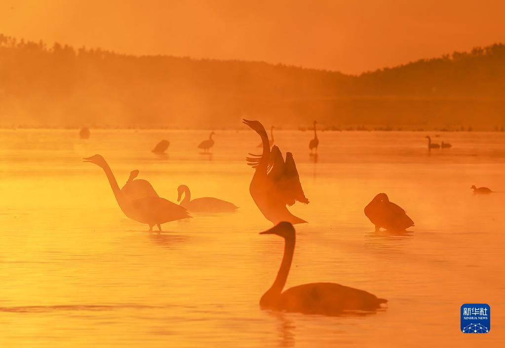2021年11月28日在山東榮成大天鵝國家級自然保護區拍攝的大天鵝。