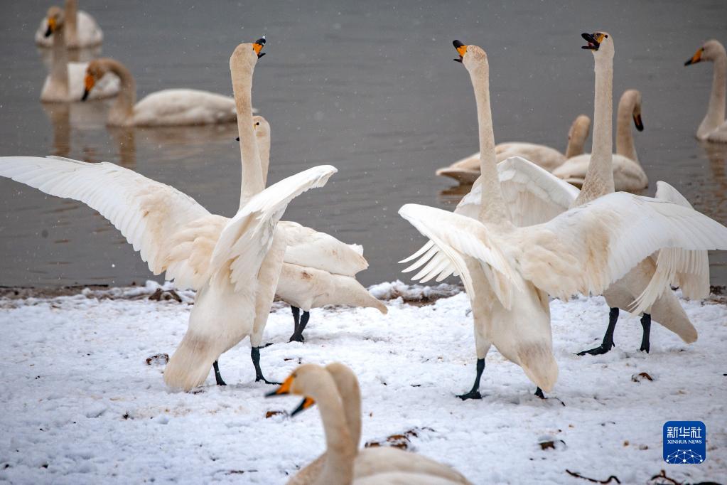 這是2022年1月23日在河南三門峽天鵝湖國家城市濕地公園拍攝的白天鵝。