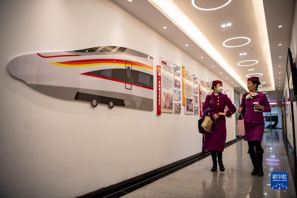 2月2日,在重慶北站綜合樓,林夢凡(左)和同事一同出乘。