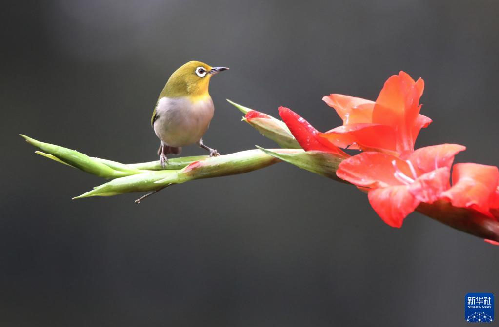 當日是二十四節氣中的立春,花兒開放,生機勃勃,引來小鳥“鬧春戲花”。