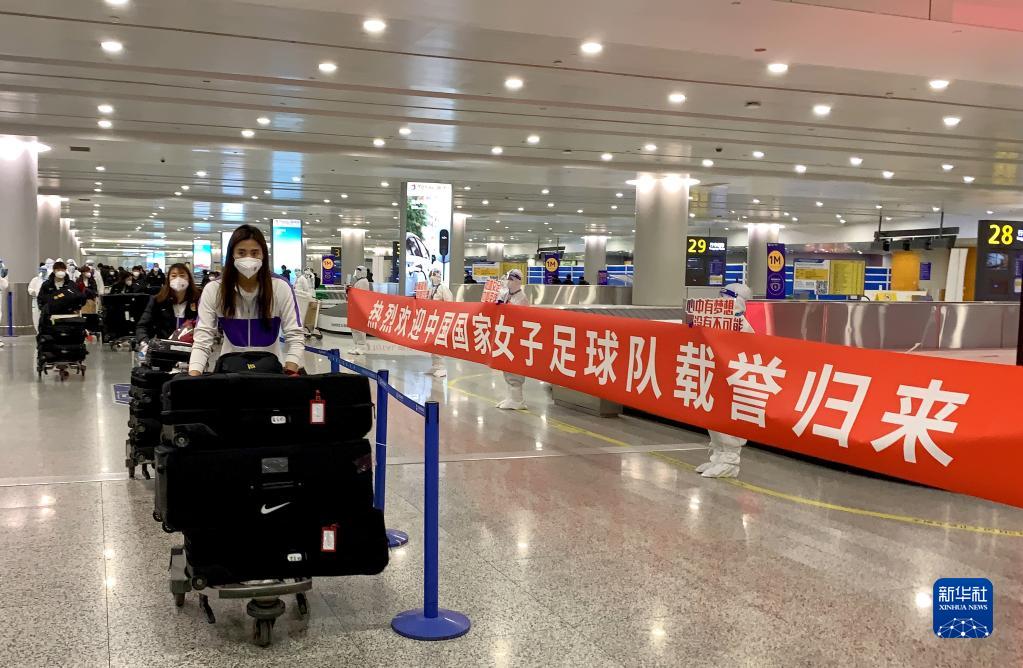 2月7日,中國女足隊員抵達上海浦東國際機場。