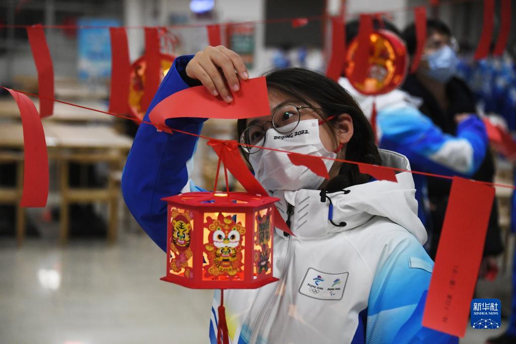 2月15日,北京理工大學為在校冬奧志愿者舉辦慶祝元宵節活動。在北京理工大學中關村校區,冬奧志愿者猜燈謎。