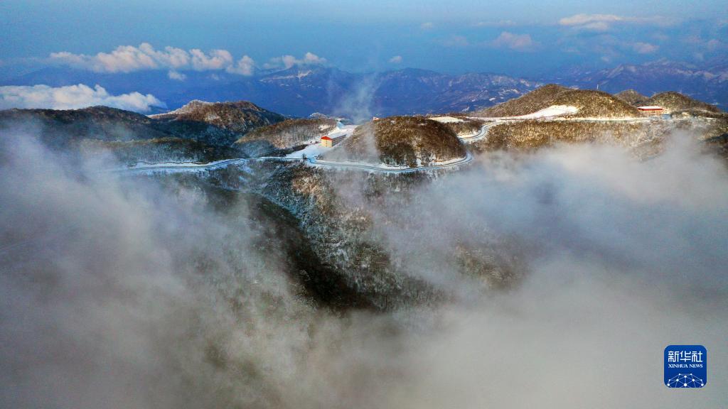 2月21日拍攝的漢中市龍頭山景區雪景(無人機照片)。