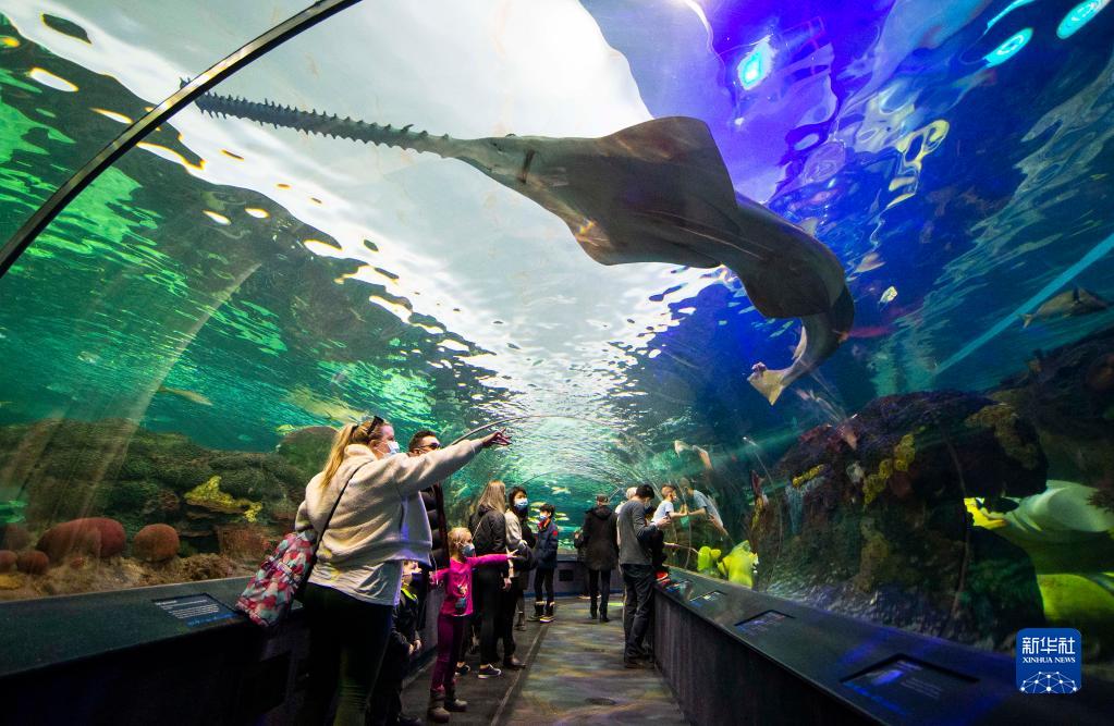 2月21日,游客在加拿大多倫多的里普利水族館內參觀。