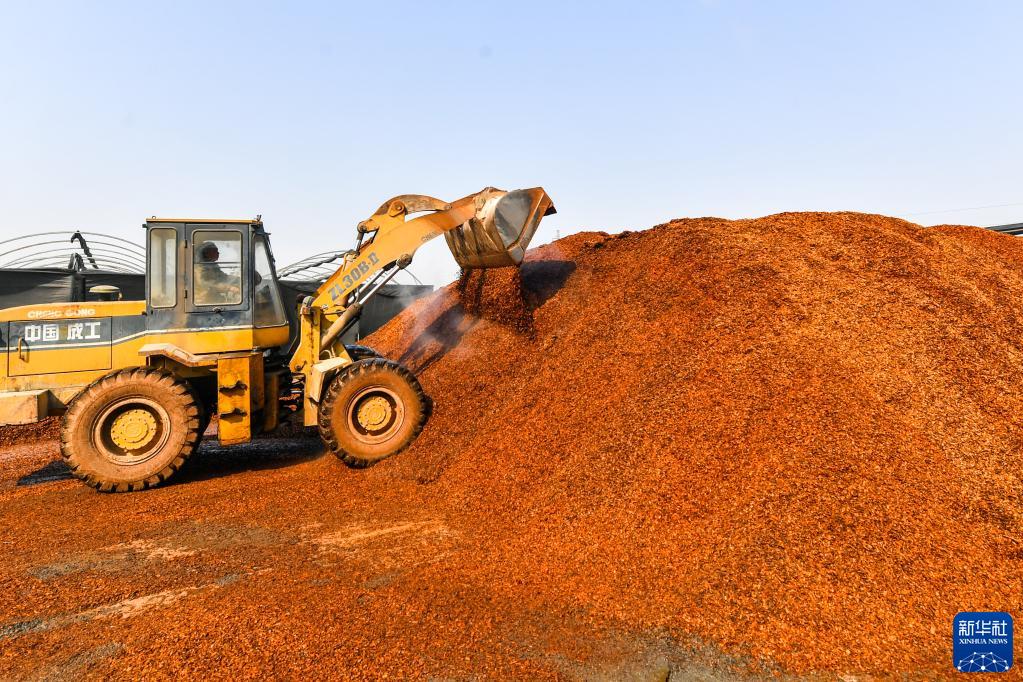 2月23日,工作人員在萬榮縣香菇產業園內整理生產菌棒的原料。