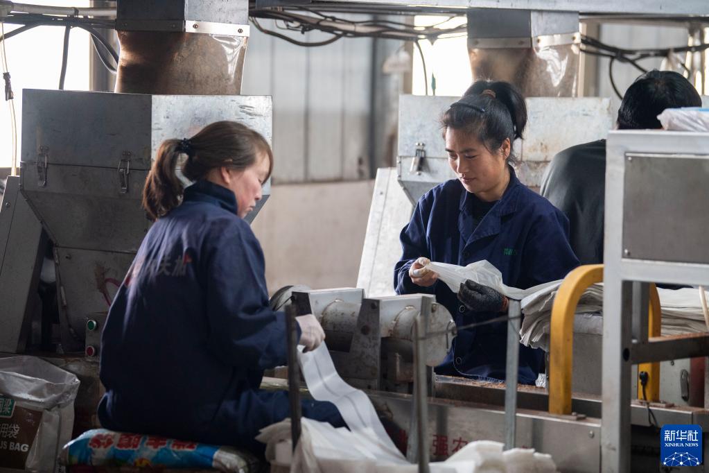 2月23日,工作人員在萬榮縣香菇產業園內加工菌棒。