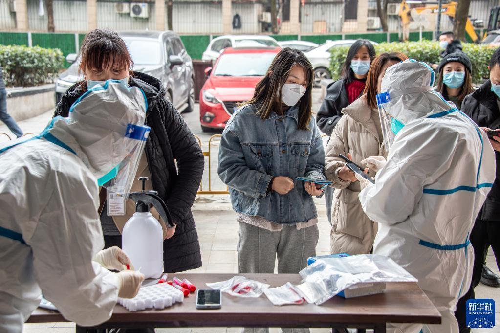 2月22日,市民在武漢市圓夢家園社區核酸檢測點進行核酸檢測。