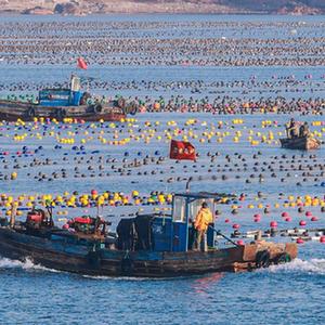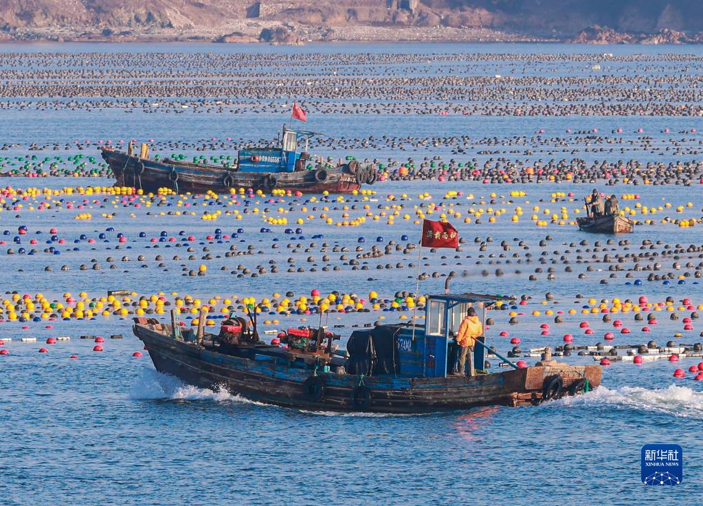 眼下正值春季海上生產的重要時期,在山東省榮成市,漁民們駕駛著漁船、舢舨在海面上穿梭,進行藻類管護、更換養殖浮漂等養殖作業,呈現出一派“海上春耕”生產繁忙景象。