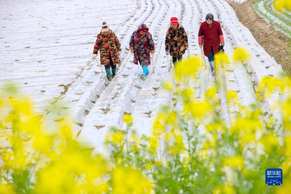 2月24日,村民正在四川省射洪市沱牌鎮桑樹林村地里勞作。