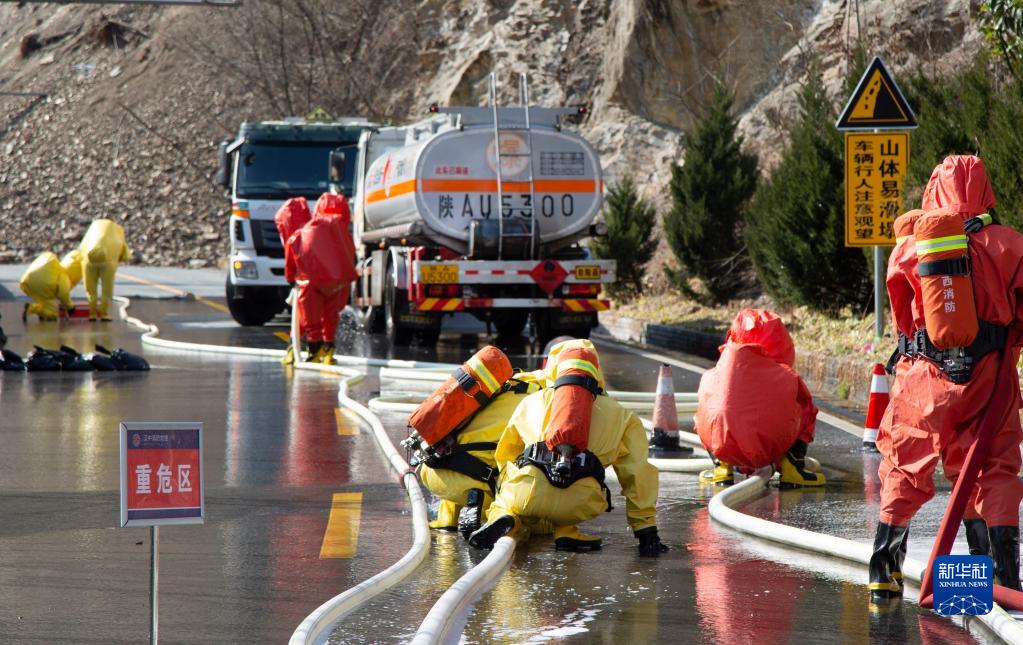 當日,陜西省漢中市在G244國道留壩縣武關驛鎮境內舉行?;返缆方煌ㄊ鹿蕬本仍菥?。新華社發(高文亞 攝)