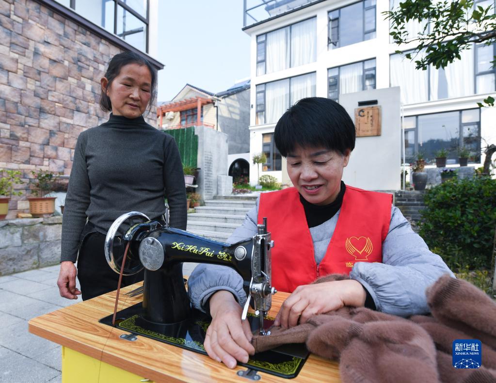3月1日,昌化鎮“有禮昌化”流動志愿服務站的志愿者在給白牛村村民提供縫補服務。