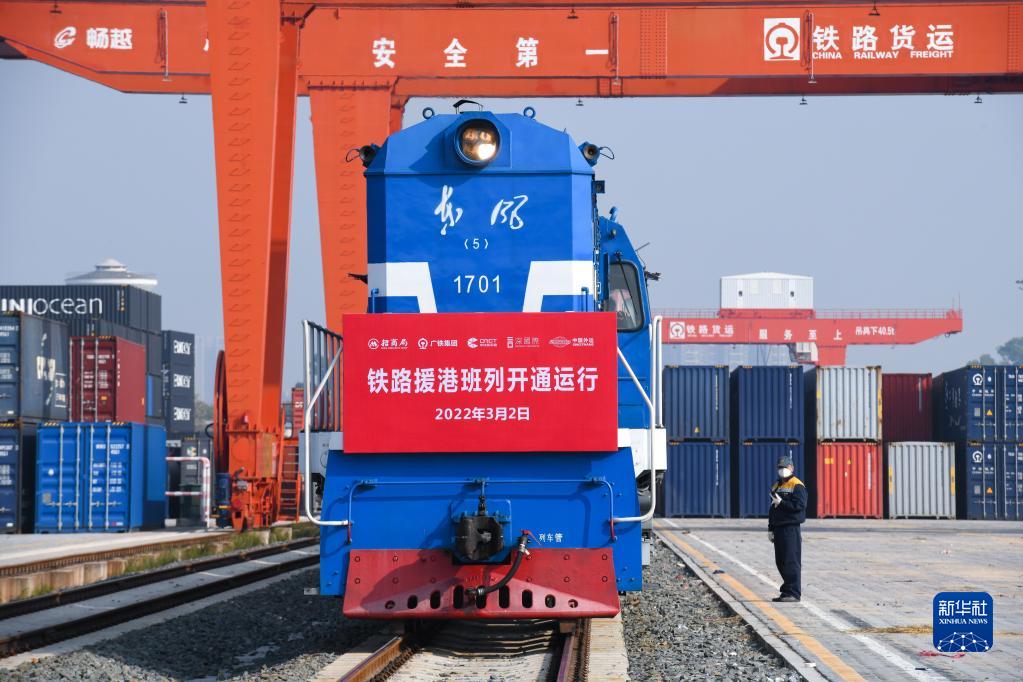 當日上午11時08分,首趟“中央援港 同心抗疫”鐵路援港班列,滿載防疫物資,從深圳平湖南國家物流樞紐開出,駛向香港羅湖編組站,這標志著中央鐵路援港班列正式開通發車。