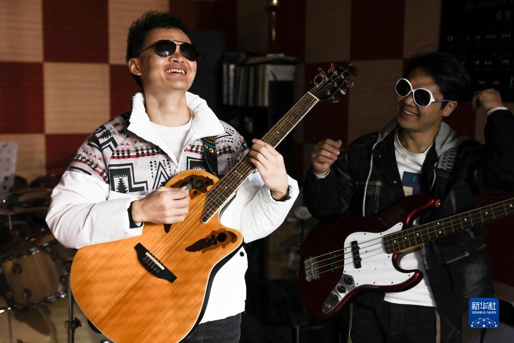 3位盲人推拿師、1位外賣小哥,這幾名“90后”青年共同組成了“折耳根”樂隊。他們白天在各自的崗位上忙碌,晚上聚在一起,用不同樂器的音符相互碰撞。除了外賣小哥彭萬海視力正常,樂隊的其他成員均為盲人。行走在黑暗中,他們選擇追光,堅持傳遞正能量。他們覺得自己就像貴州人最愛吃的折耳根(魚腥草),深埋在黑暗之中,積蓄精華,慢慢拔節生長。北京冬殘奧會開幕在即,“折耳根”樂隊還創作了一首屬于他們自己的“冬殘奧會之歌”,為運動員加油。