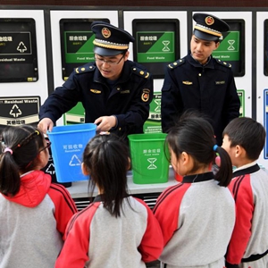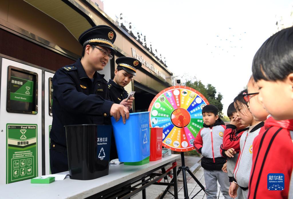 當日,安徽省合肥市包河區淝南社區在轄區垃圾分類投放站開展“垃圾分類 從我做起”主題活動,通過垃圾分類互動游戲,向社區居民推廣生活垃圾定時定點分類投放。