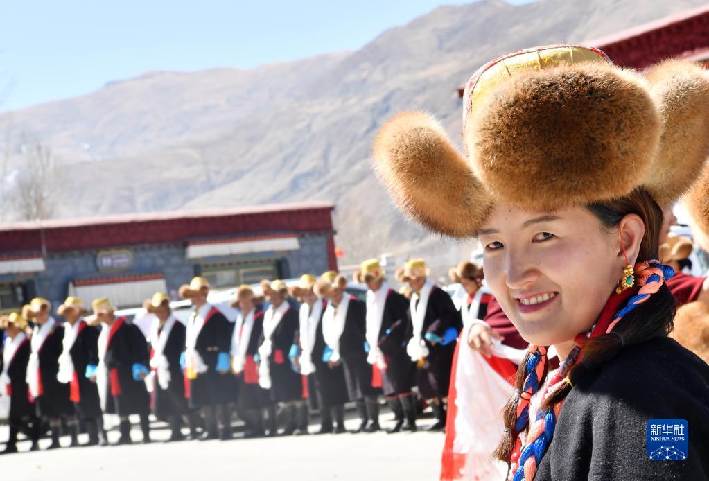 3月3日,西藏山南市貢嘎縣崗堆鎮農民唱歌跳舞,歡度藏歷水虎新年。