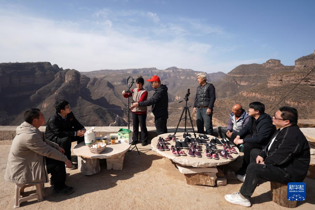 3月3日,在河北省沙河市柴關鄉大康村,黨員志愿者段計永(左四)培訓村民直播帶貨。