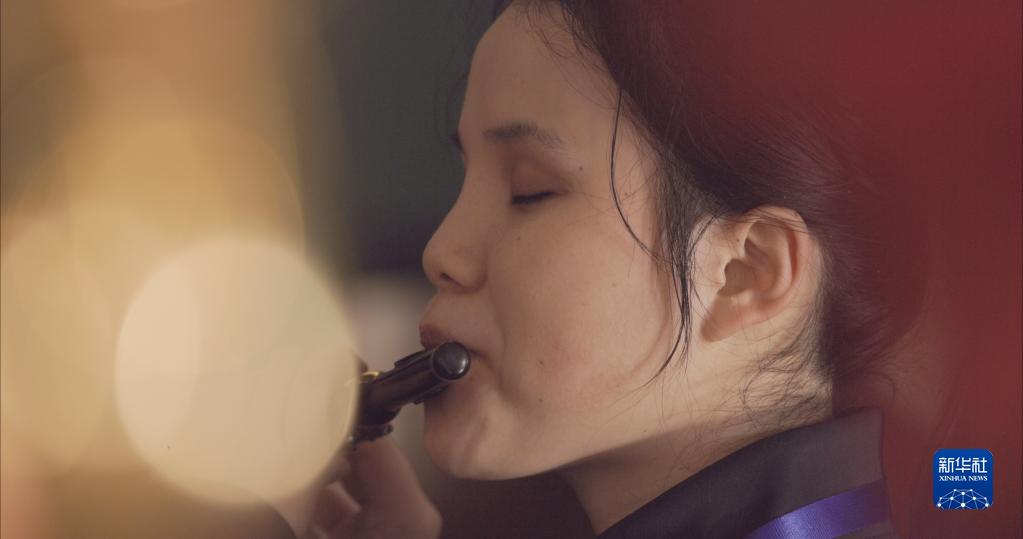 圖為重慶市特殊教育中心揚帆管樂團長笛手田秀云在北京的排練場館內進行排練(2月16日攝)。