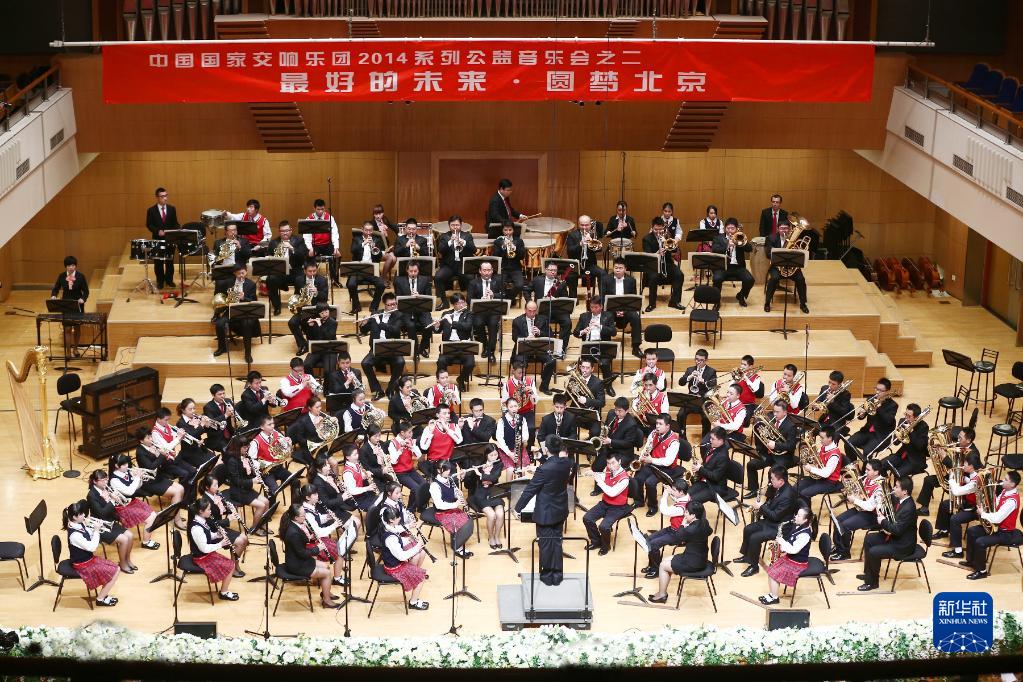 圖為2014年重慶市特殊教育中心揚帆管樂團與中國國家交響樂團同臺共演“最好的未來”夢想公益音樂會。