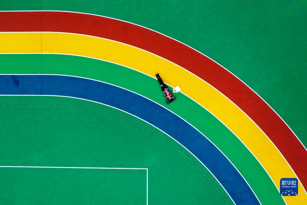 圖為在重慶市特殊教育中心,揚帆管樂團小號手王太樊在操場上練習小號、背誦樂譜(2019年10月10日攝)。