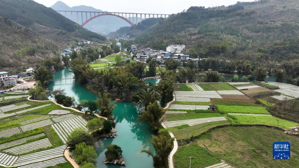 這是3月9日拍攝的貴州省黔南布依族苗族自治州羅甸縣沫陽鎮大井村一景(無人機照片)。
