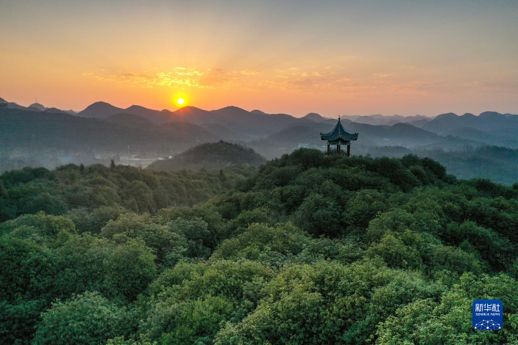 這是3月9日在貴州省畢節市百里杜鵑國家森林公園拍攝的清晨景色(無人機照片)。