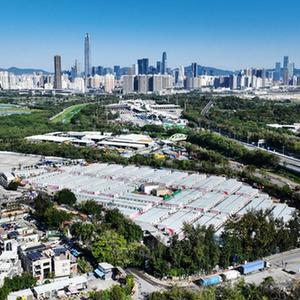 這是3月8日拍攝的香港新田方艙醫院(無人機照片)。