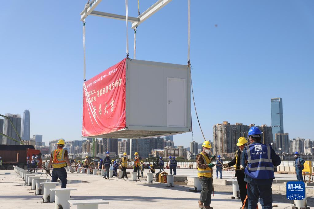 中央援港應急醫院項目完成首個集成式箱體吊裝