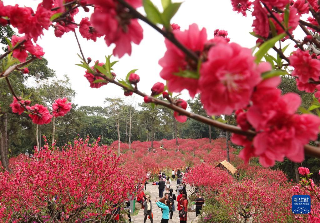 3月10日,人們在廣西南寧市青秀山公園賞花游玩。