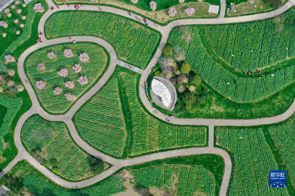 3月10日拍攝的浙江省寧波市植物園一景(無人機照片)。