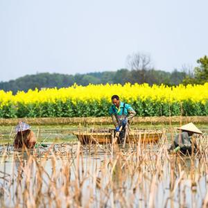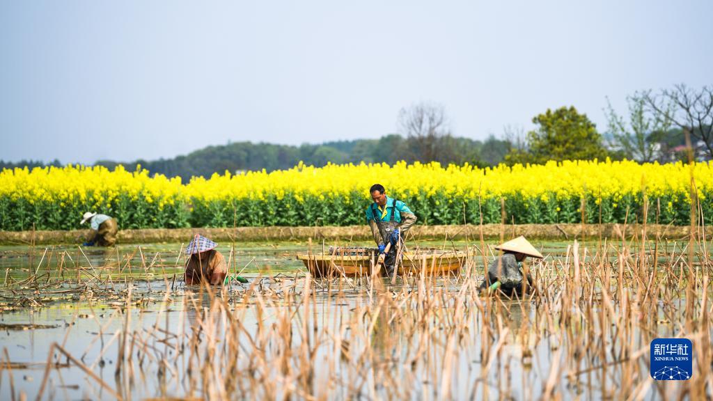 3月13日,在湖南省衡陽市常寧市板橋鎮板橋村,藕農在采收蓮藕。