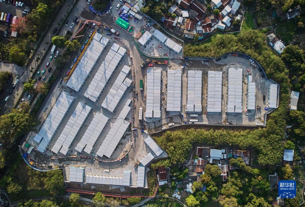 這是3月12日拍攝的中央援建香港粉嶺社區隔離設施(無人機照片)。