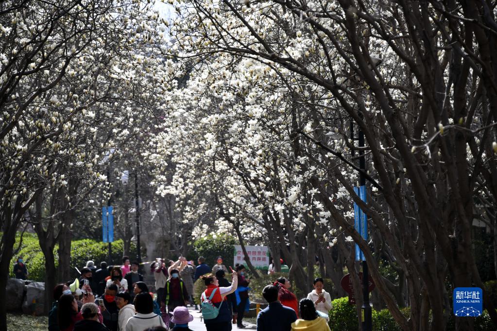 隨著氣溫上升,泉城濟南市區內各處玉蘭花大面積盛開,美不勝收。
