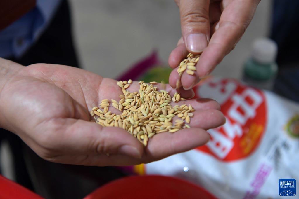 3月14日,南昌縣市場監督管理局蔣巷分局的工作人員在蔣巷鎮的一家農資商店抽檢銷售的早稻種子。