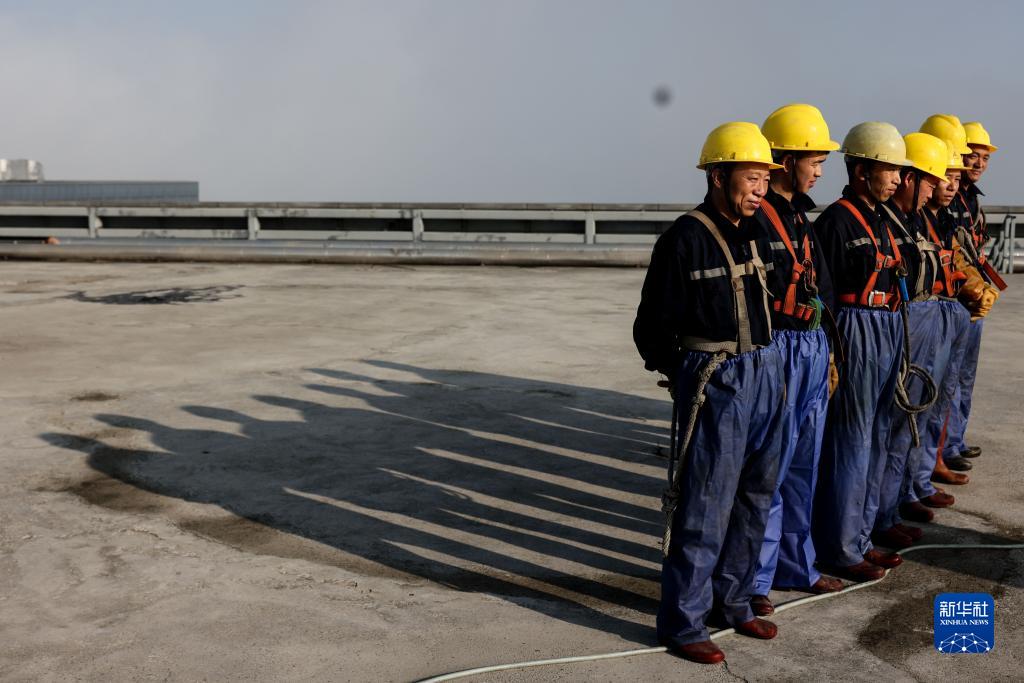 3月15日,“蜘蛛人”在貴陽國際貿易中心雙子塔樓頂集結,準備進行清洗作業。