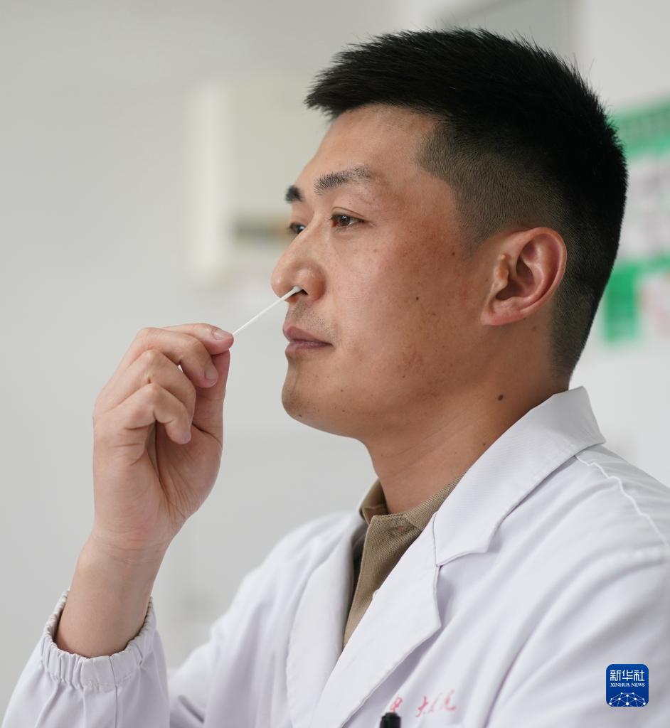 3月15日,在東南大學附屬中大醫院,張臣進行鼻拭子采樣。