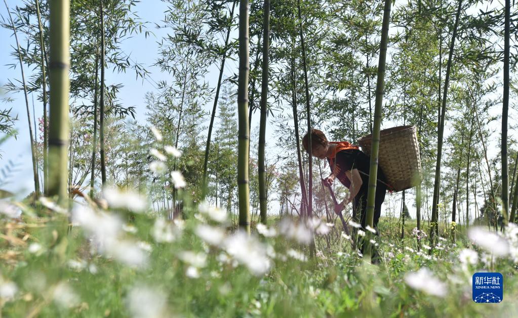 3月15日,村民在四川省內江市市中區史家鎮牛橋村采挖雷筍。